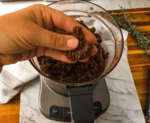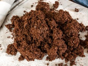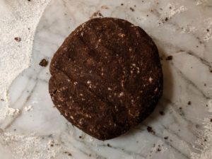 - Press the crumble into a ball and then gently smash the ball into a thick disk