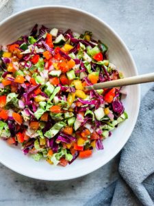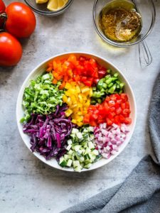 This colorful chopped salad is every bit as fun and delicious as it looks and if you have a beautifully colorful vegetable in your refrigerator, it is welcome in this chopped rainbow salad.