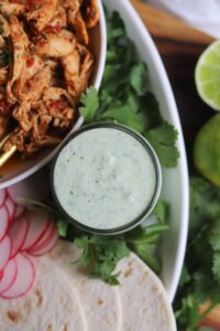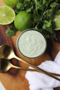 This creamy cilantro lime dip is so perfect with any sort of tacos, nachos, enchiladas, skewers, kebabs or samosas that need a layer of fresh, tanginess!