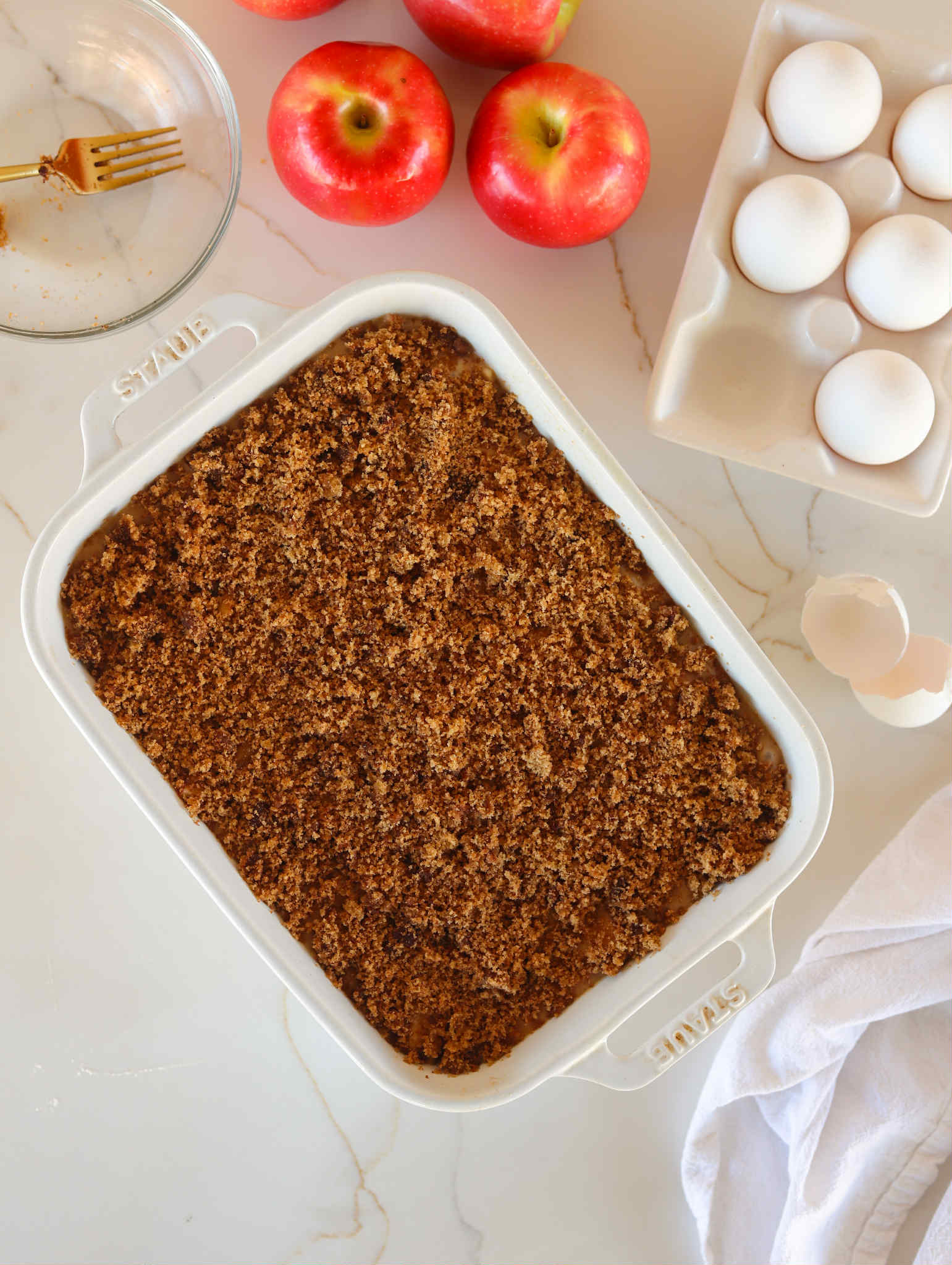 - Sprinkle the cinnamon crunch topping evenly over the batter