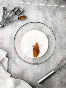 - Start mixing on low speed until the sugar and cinnamon are incorporated and then increase the speed to medium