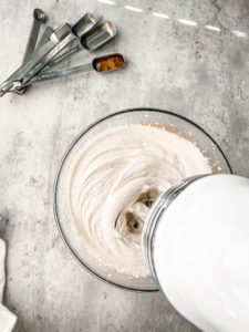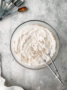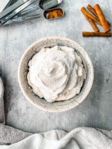 This whipped cream is wonderful. You get everything you love about whipped cream… cool, fluffy, sweetness, but also have the warm, comforting flavors of cinnamon and I love it so much.