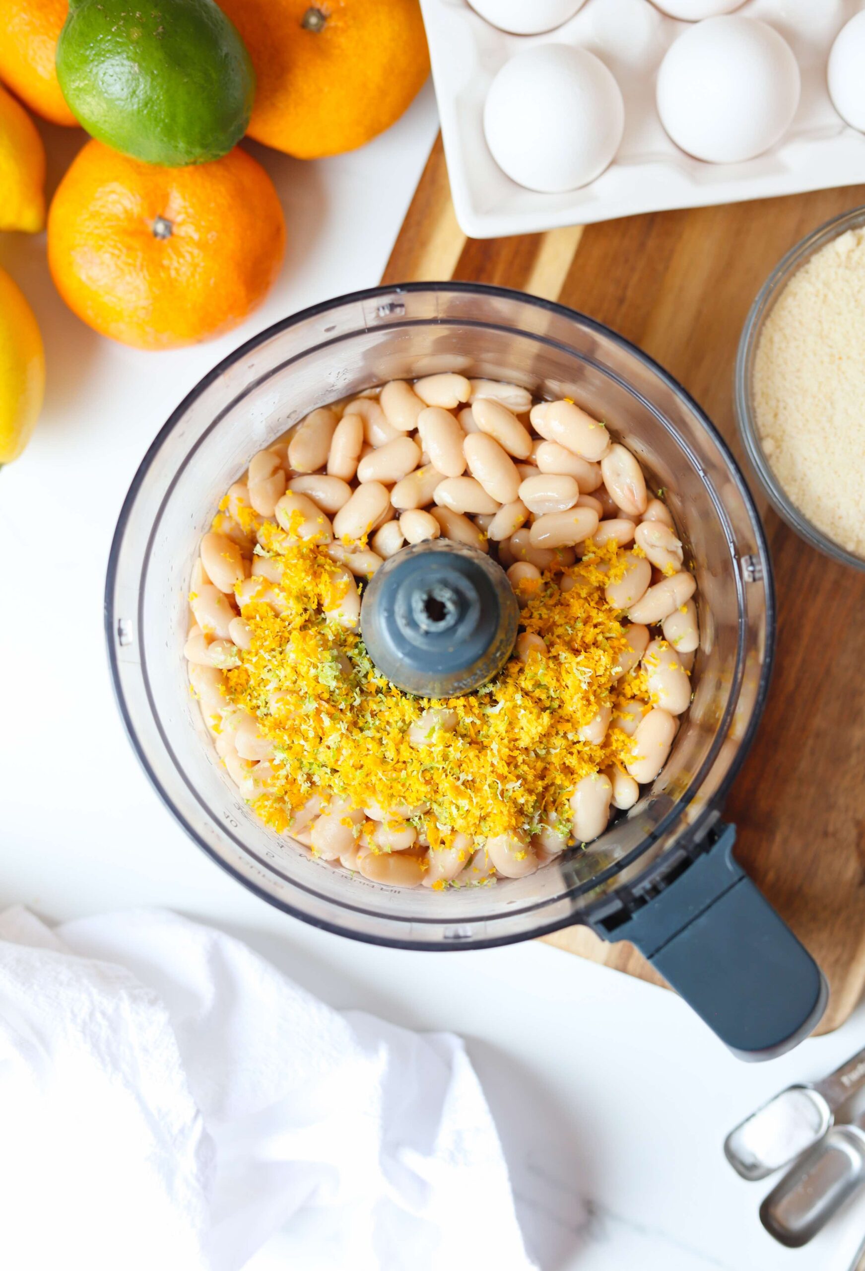- In a food processor, combine 29 ounces of drained cannellini beans, 210 grams of honey, 1 teaspoon of vanilla extract, 2 tablespoons of fresh citrus juice and 1 tablespoon of fresh citrus zest