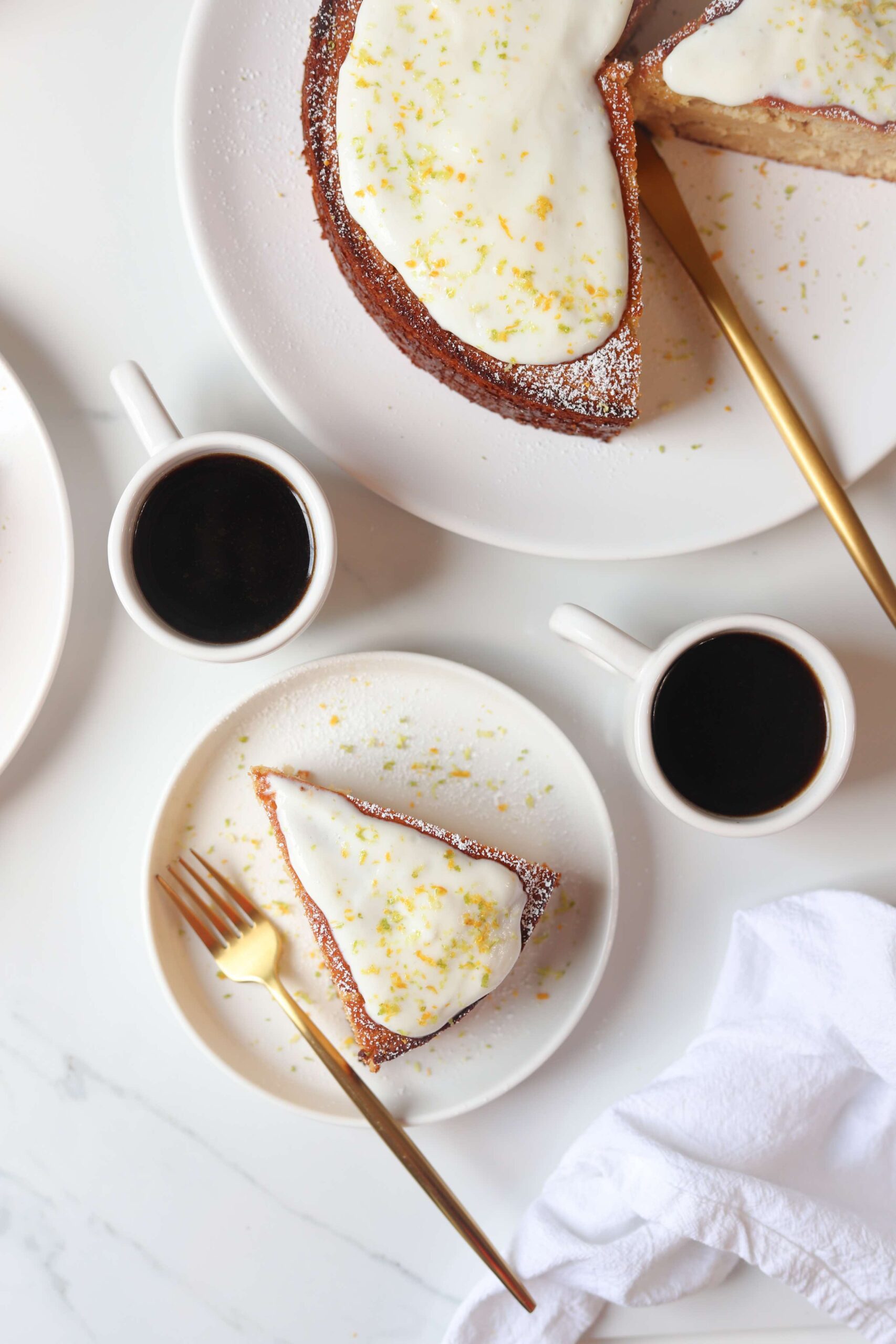 If you want to notch up the citrus flavors or add a little more sweetness to this cake, I love using my greek yogurt frosting on this one.