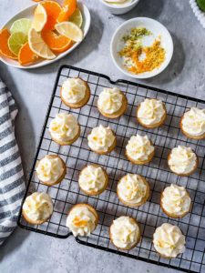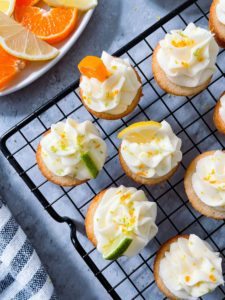 - Top with citrus buttercream frosting and decorate with fresh citrus zest or sprinkles (optional)