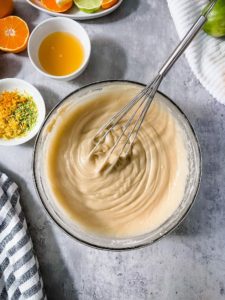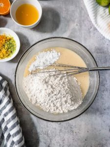 Last, but not least, gently whisk in 1 tablespoon of citrus zest, 1/4 cup of lime juice and 1/4 cup of clementine juice (or 1/2 cup of any citrus juice).