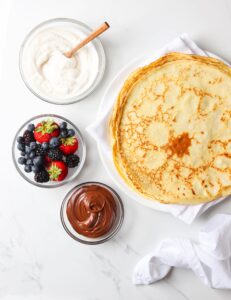 Light, delicate super thin French pancakes that can be enjoyed sweet or savory.