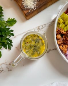 Recently, I started playing with my original italian dressing recipe to make it a little closer to my OG favorite and I am proud to say that I did it. This dressing is fantastic! Flavorful, herby and slightly creamy with lots of parmesan whisked directly into the dressing. This is definitely a dressing worth grabbing a breadstick for, because you are not going to want to leave one drop of it behind.