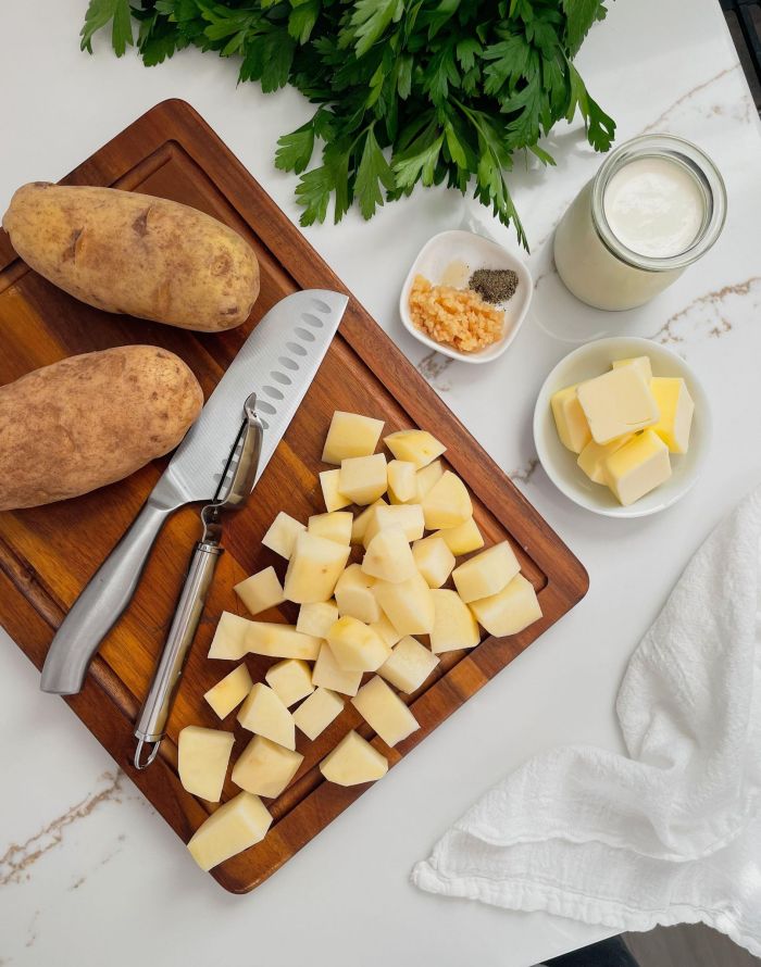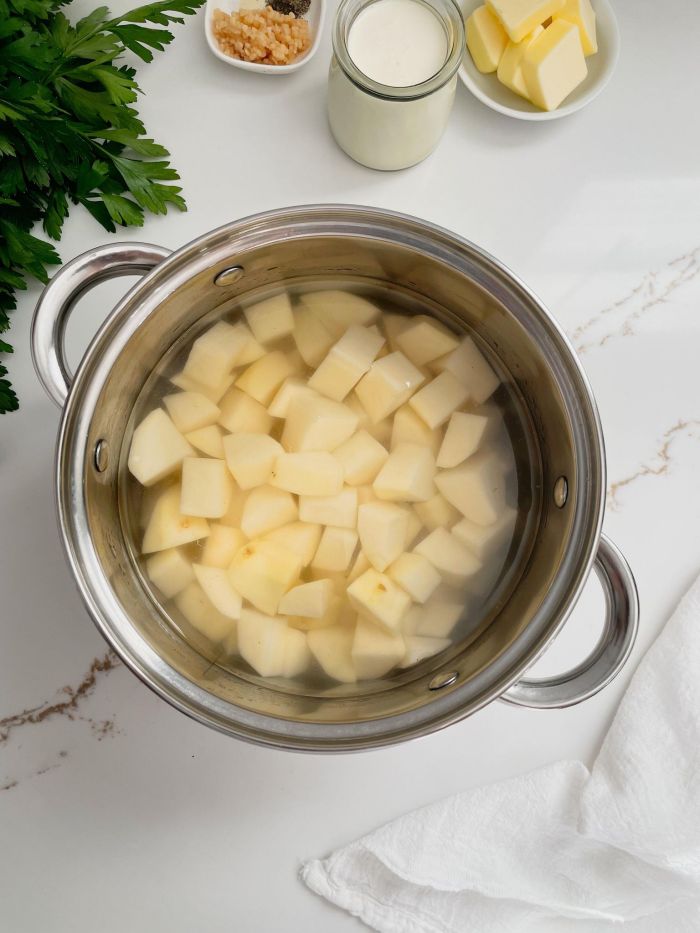 - 3 pounds of yukon gold potatoes, peeled, cubed