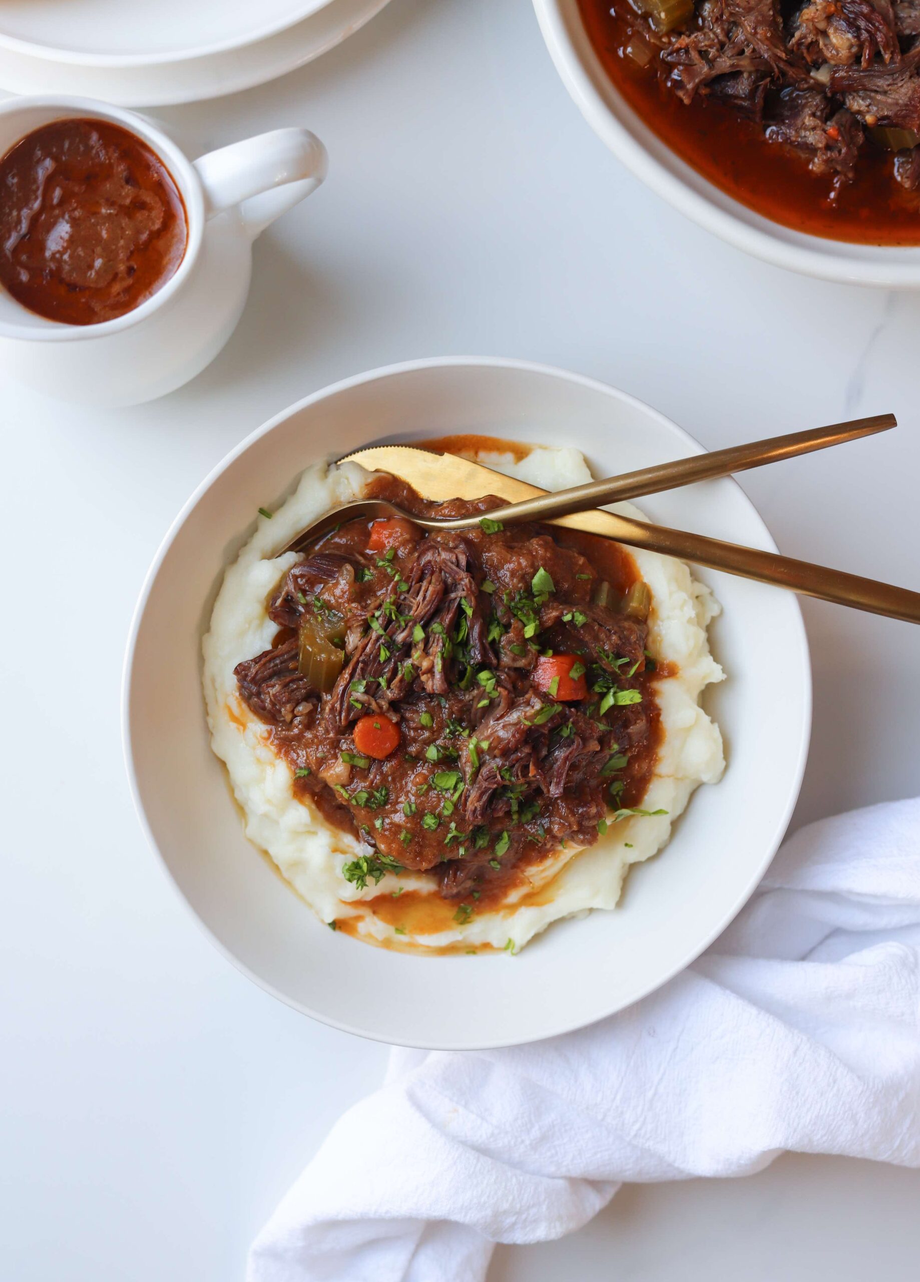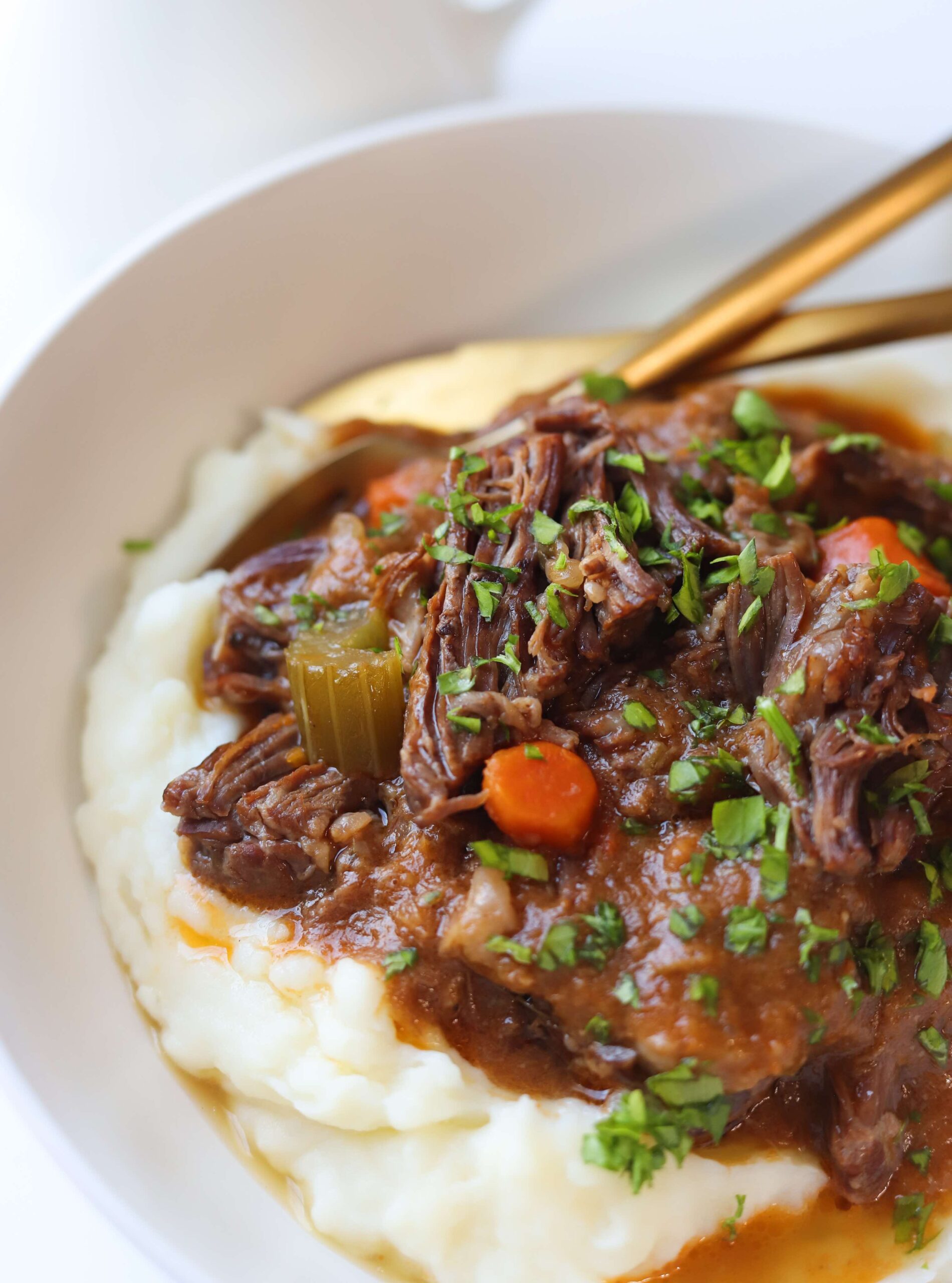 Pot roast is such a classic. Super tender beef smothered in a rich, flavorful gravy served over creamy mashed potatoes. It is the ultimate comfort food meal to serve for Sunday dinner or to friends and family that you want to make feel quite special.