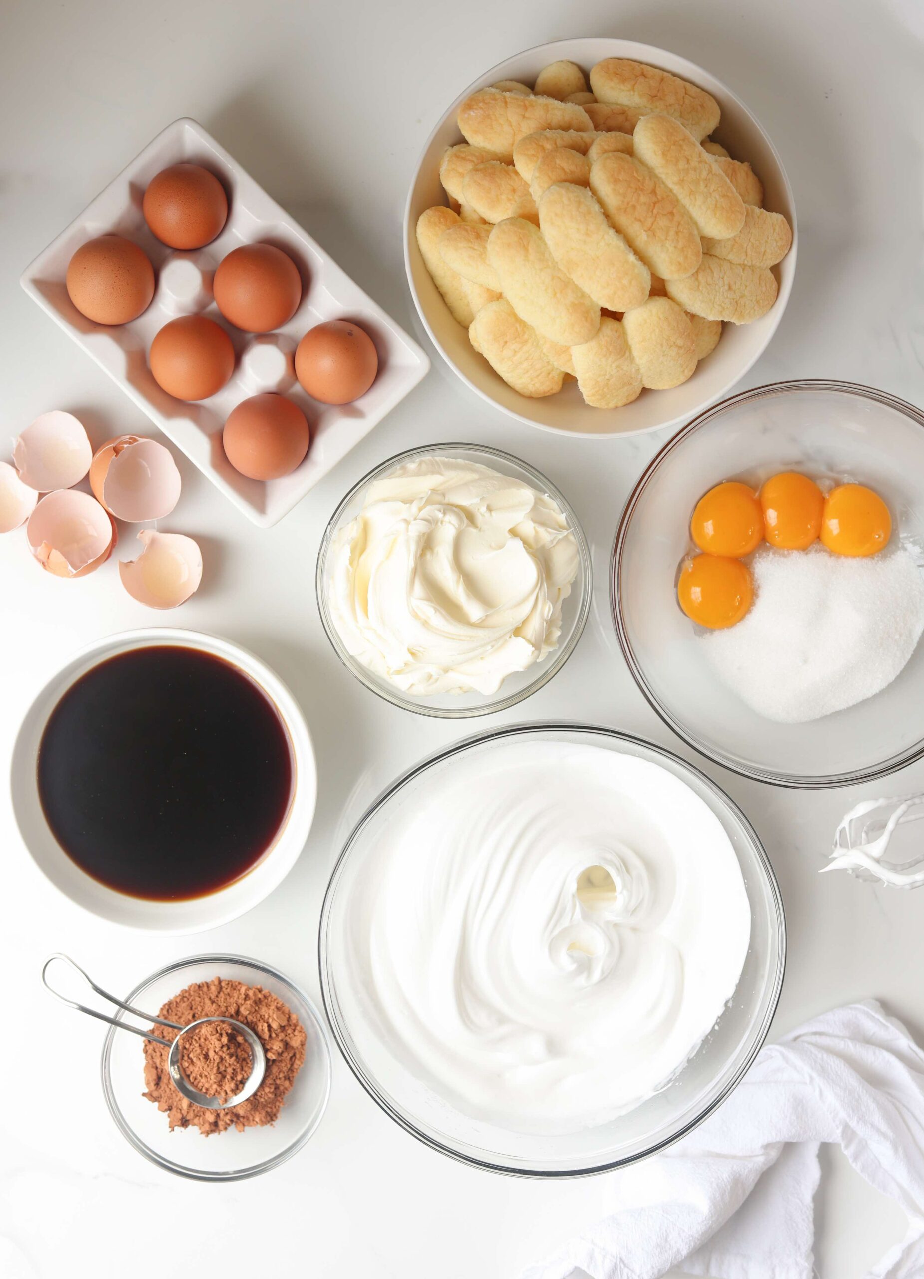 There are 7 classic ingredients – mascarpone, eggs, sugar, vanilla, espresso, ladyfingers and cocoa powder (8… if you want to add liquor). That’s it. No heavy cream, no chocolate (garnishing with chocolate is cool though) and no cooking. If you are nervous about not cooking the eggs, all I can say is that I have been making this for years and my grandmother made this for decades without incident. I suggest getting a good batch of fresh eggs or using pasteurized eggs to make sure they are safe for consumption.