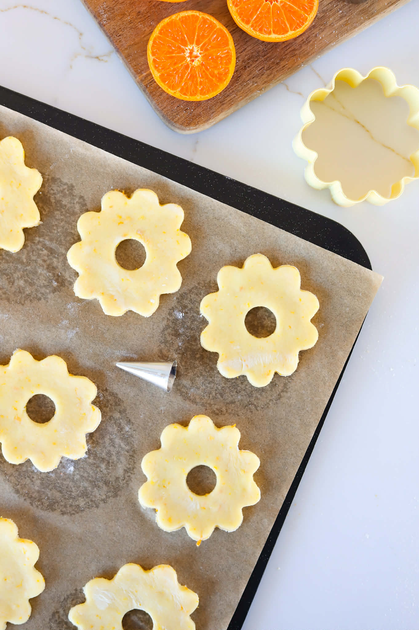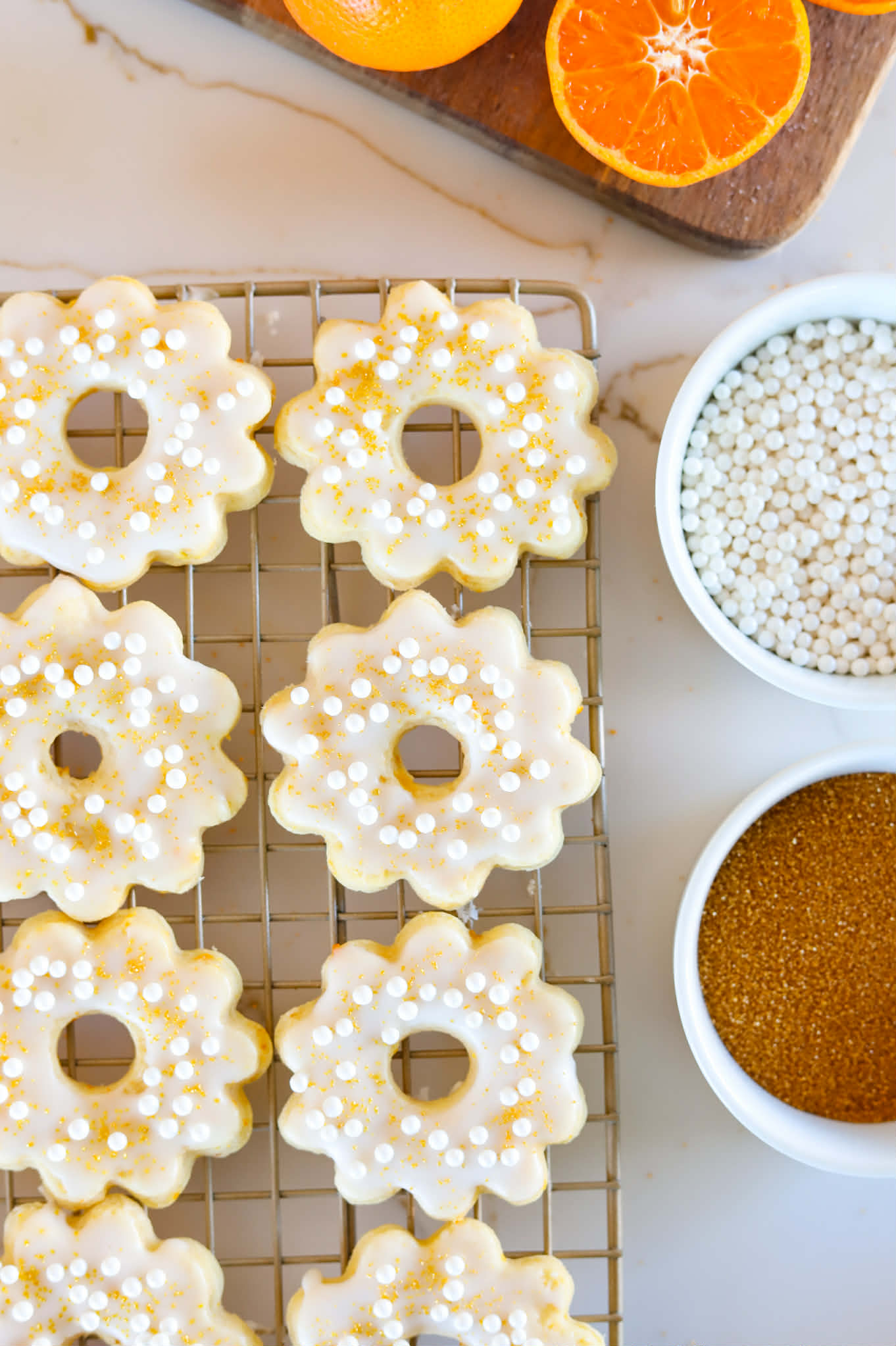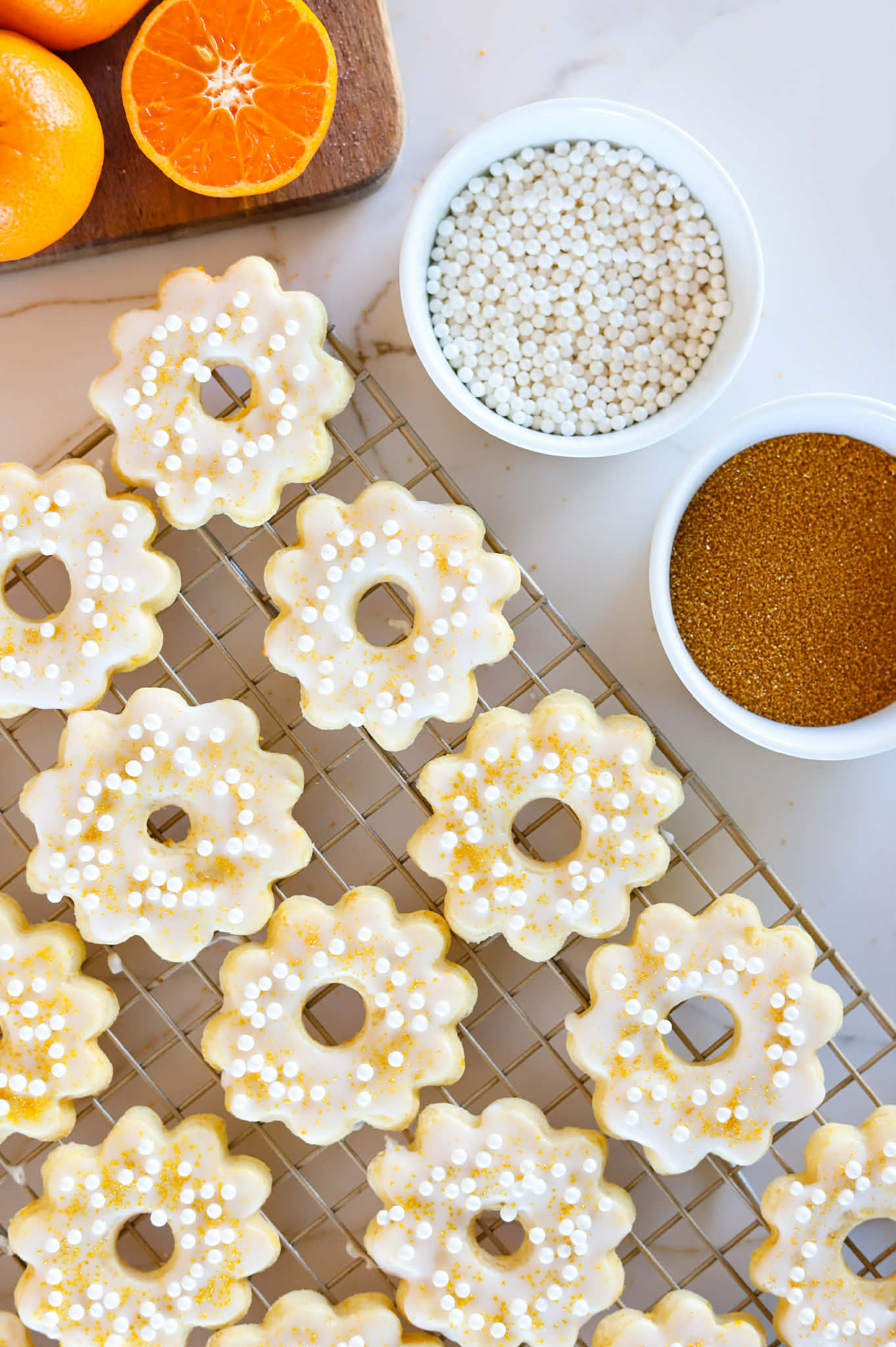 Aren’t they adorable? So elegant and delicate. The perfect little cookie to decorate any brunch table or celebration spread. They are tender, buttery and totally delicious with lots of bright citrusy flavors and pair perfectly with coffee, tea or a latte.