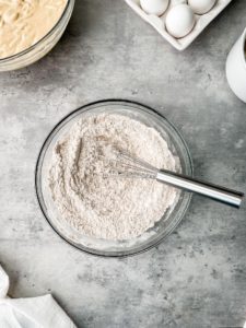 - Add the dry ingredients into the wet ingredients and mix until all of the ingredients are just incorporated