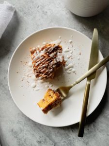 Once the drizzle is just right, transfer the cake out of the baking dish and slice it into big slices (the bigger, the better). Add that drizzle and pick yourself out the best slice…. I recommend the one in the very center, but that is just my humble recommendation…