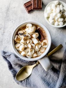 There is something super cozy about a mug of hot chocolate. It is warm, sweet and usually has a few marshmallows or some whipped cream involved. Whats not to love? …and if you happen to be avoiding dairy, you should not be deprived of this deliciously comforting drink.