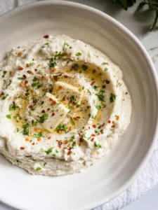 A smooth texture is really important. Cauliflower has a fairly distinct texture when raw and if you leave some of that behind, you are going to instantly recognize the cauliflower when you take your first bite. If you blend it until it is smooth and super creamy, it almost becomes an unrecognizable dish (in a good way!). Definitely not a potato, but something flavorful and uniquely delicious.