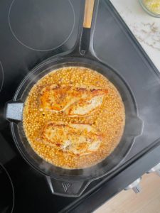 As soon as it begins to simmer, add the chicken back into the skillet, cover the skillet and cook over medium to medium low heat (just enough to maintain the simmering) for 10-12 minutes.
