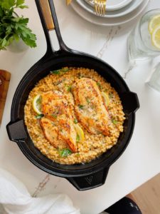 This creamy garlic lemon couscous with chicken is a skillet of comfort that you are going to absolutely love!