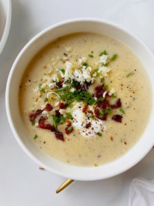 But this is potato soup, so potatoes need to be the star of the show. Adding carrots, mushrooms, leeks or any of the other bold ingredients that are often added to potato soup will of course add flavor, but is it still really “potato” soup? I vote no.