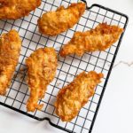 - Transfer fried tenders onto a cooling rack or paper towel lined plate and season with a pinch of salt