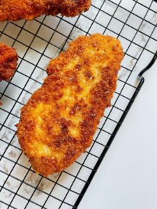 - Transfer the flour and egg coated chicken into the panko mix , ensure that both sides are generously coated and set aside for now