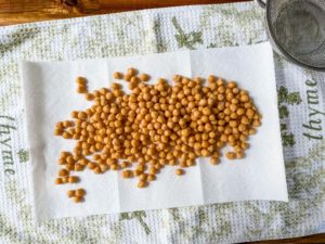 - Drain the chickpeas and transfer them onto a few sheets of paper towels