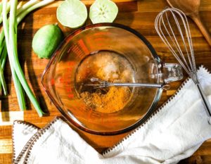 The first step is to marinate the chicken. This marinade is so flavorful and great for any dish that you want to add some warm layers of curry flavor into. The ingredient list is a little long, but each element brings something special to the dish and most of these items are pretty common pantry staples.