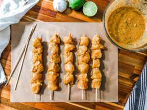 If you aren’t familiar with curry flavors or maybe even think that you aren’t a fan, try these chicken skewers. The flavors are well balanced between salty, spicy and tart with just the right amount of sweetness. My husband is not a fan of spicy food and he loves these curry spiced chicken skewers!