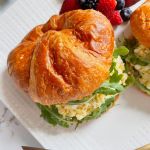 My preferred way to enjoy egg salad is in a buttery croissant, but it is great on freshly toasted sourdough or soft french bread. It is also great served in a lettuce cup or with crackers. There are many ways to enjoy egg salad!