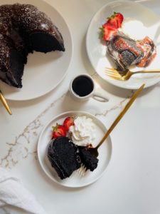 You will need 3 special ingredients for this cake: black cocoa, espresso powder and some strong freshly brewed coffee. I keep all of these items on standby in my kitchen, as I use them frequently, but if you don’t have them in your pantry, they should all be easy to find on Amazon.