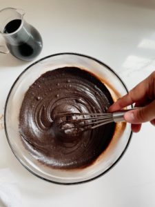 - Add 1/2 cup of strong coffee and carefully mix until fully incorporated