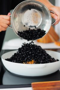 - Add 32 ounces of dried black beans into a large bowl, cover with cold water. If using carne seca, add it into a separate bowl and cover with cool water. Transfer both bowls into the refrigerator and let them soak overnight. Drain and rinse them before adding them into the feijoada