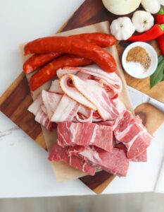 Different family recipes call for the addition of different pork cuts from short ribs and lion to pig ears and feet and different regions add more spices or peppers to add a little heat or smokiness to the overall flavor.