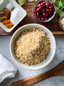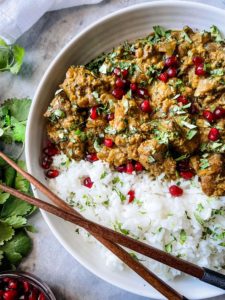 The chicken is super tender and the curry is rich and thick with just the right amount of sweetness from the pomegranate molasses, so many great spices from our balanced spice blend and a uniquely delicious nuttiness from the ground walnuts.