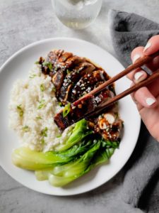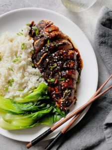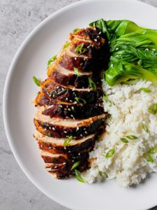 This five spice glazed roast chicken is one of the best roast chicken recipes I have ever developed. The glaze is sweet, salty, garlicky and full of the warm, comforting flavors that are in five spice powder.
