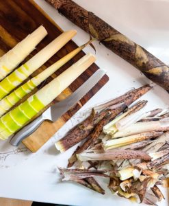 I trimmed any tough ends off and repeated the process until all of my shoots were peeled and clean.