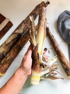 When we returned to the US, I loved seeing big groups of bamboo growing along the back roads of eastern North Carolina, but I had no idea that these beautiful sky high shoots could be foraged and brought back into my own kitchen.