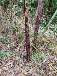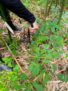 So we met at the spot and headed into the woods. The groups of bamboo look mostly the same in both North Carolina and Okinawa, the main difference is that instead of watching out for huntsman spiders and habu snakes, we were on the lookout for ticks and copperheads here in NC.