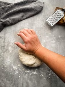 Transfer the dough onto a floured work surface and knead for about 5 minutes. You are looking for a soft, smooth workable dough. Only add additional flour if the dough is really sticky.