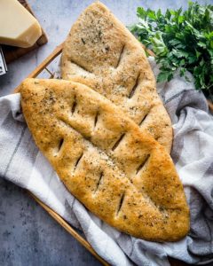 Fougasse is a gorgeous, rustic French loaf similar to Italian focaccia bread with its buttery, chewy texture and delicious flavors and this particular fougasse is full of salty parmesan and earthy herbs.
