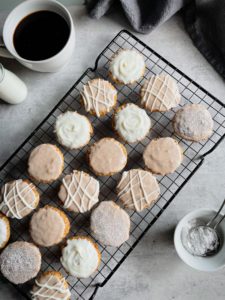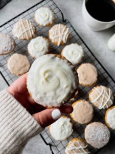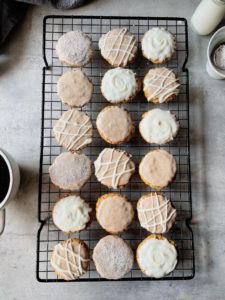 Once you glaze your cookies, let them hang out on the cooling rack until the frosting sets up and then enjoy!