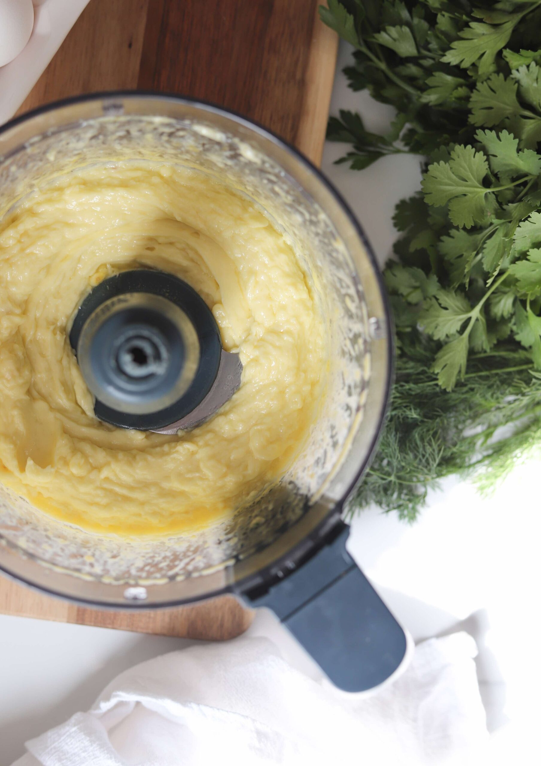 Do a quick taste test to see if you need another pinch of salt and then you can either pulse the herbs in or hand mix them. I prefer to hand mix the herbs in to avoid breaking them into tiny pieces, but this step is totally optional. However you incorporate the herbs, your aioli will be delicious…