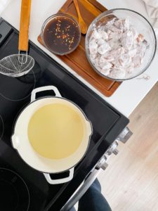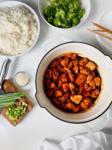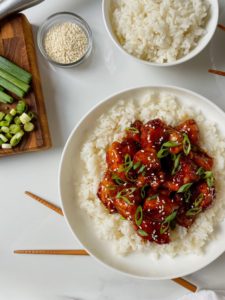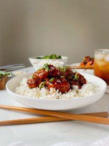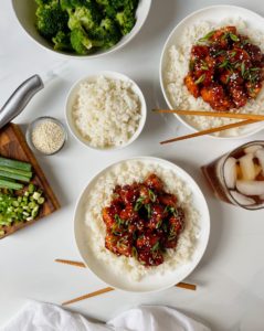 Note: General Tso’s is traditionally served with rice. If you are planning on making rice, start it first, as it may take longer than the chicken to cook.
