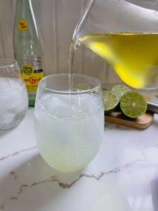 - Add 2 tablespoons of fresh lime juice and 2 tablespoons of ginger simple syrup