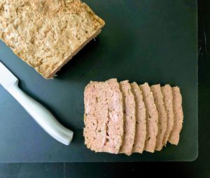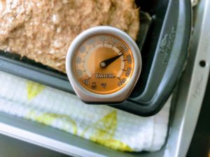 Once the water is boiling, add enough water into the cake pan to come 1/2 of the way up the sides of the loaf pan. Carefully place the pans onto the middle rack of a preheated oven and bake at 325 degrees for 50-60 minutes. The meat is done when the internal temperature reaches 165 degrees.