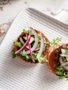 When your sliders are golden brown on both sides and you are happy with the internal temperature, transfer them onto a plate and gather your assembly ingredients.