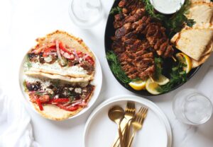Once the souvlaki has been grilled to perfection, gather your gyro assembly ingredients…