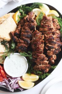 If mediterranean flavors are your thing then you will love souvlaki. Simply translated to “meat on skewers”, Souvlaki is a lemony, herby greek version of a classic meat kebab.