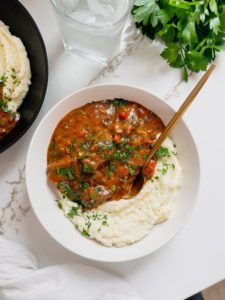 For me, the flavors in this gravy, the tenderness of the beef and those creamy grits are just the quintessential cajun comfort food trio. I literally can’t get enough of this hearty meal. It has a little bit of heat, sweet, smokiness and earthiness. Everything is well balanced and addictively satisfying.