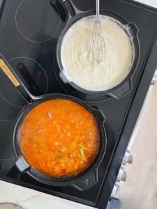 Make the creamy cheddar grits...